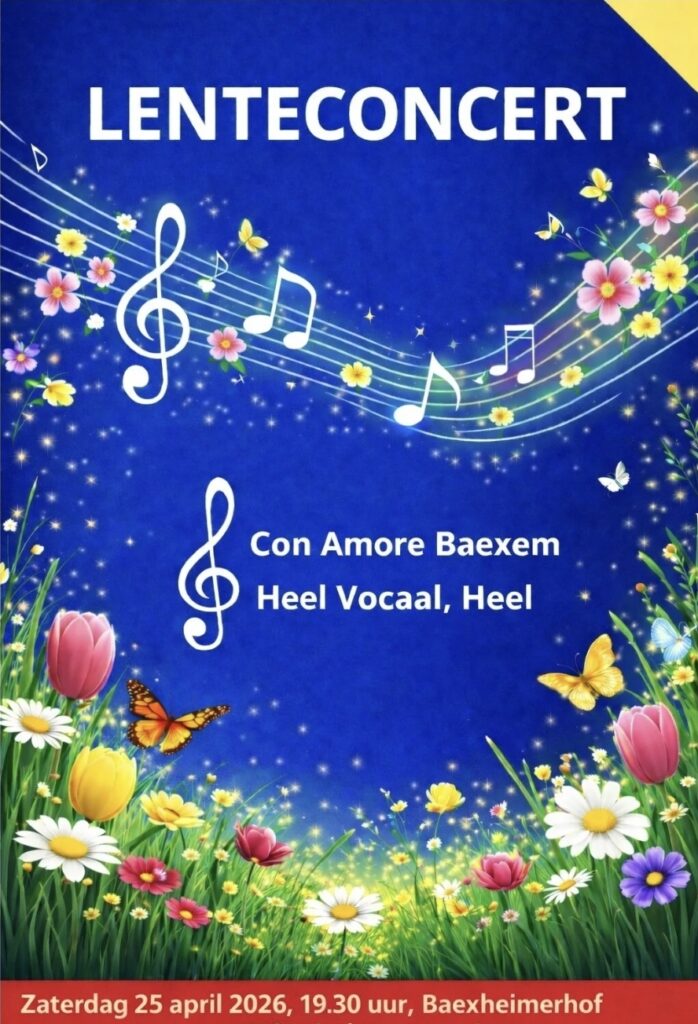 Het lenteconcert 2026 van gemengd koor Con Amore uit Baexem staat in het teken van Film en Musical. Voor dit lenteconcert op zaterdag 25 april 2026 hebben zij ons koor uitgenodigd.